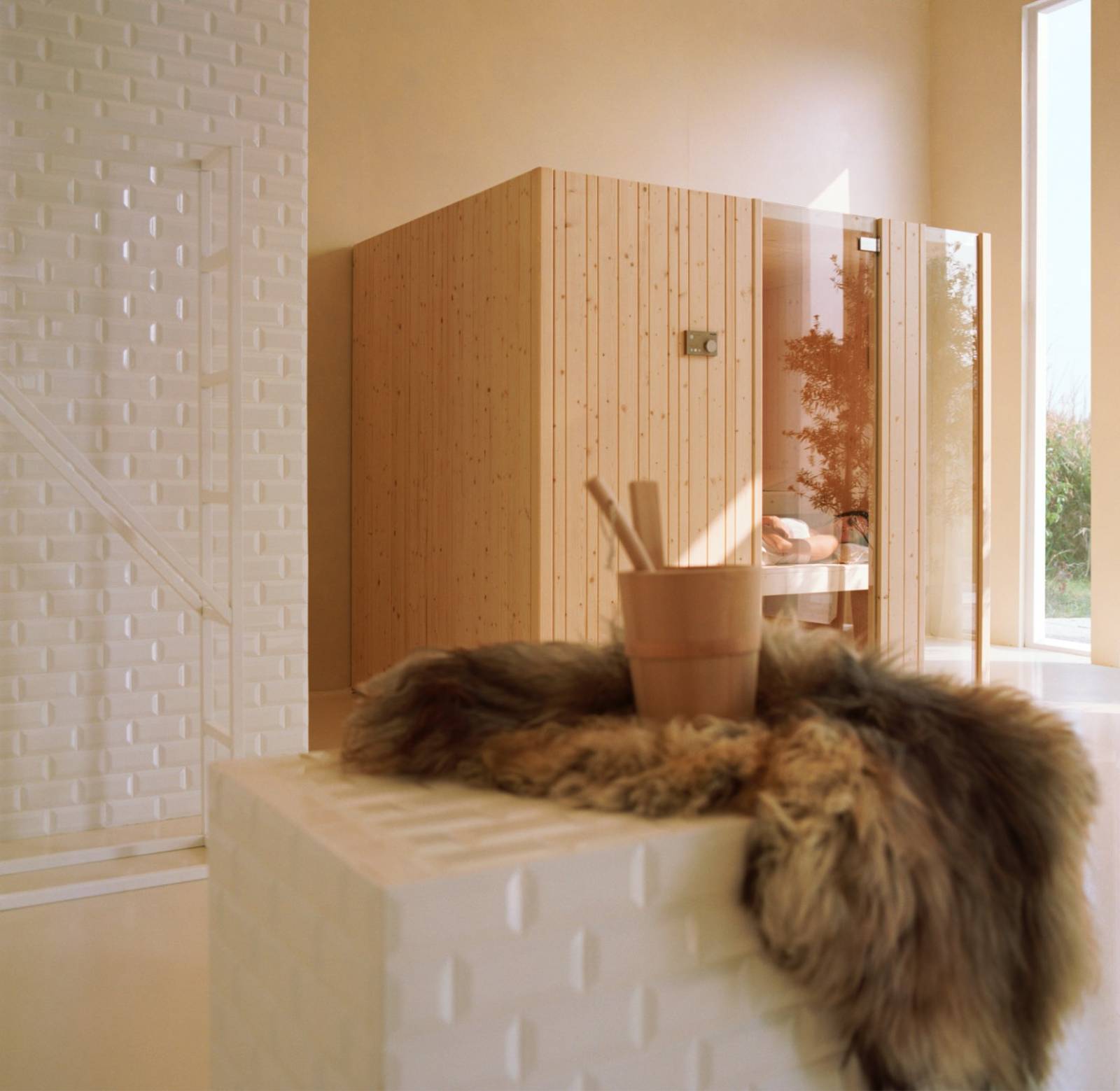 Fabriqué entièrement en bois précieux de Pin finlandais ou Hemlock canadien sans nœuds, Auki combine l’ancienne tradition des saunas nord-européens avec un design moderne.
