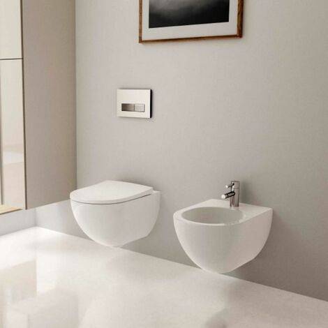 Pack cuvette suspendue ACANTO à alimentation indépendante de 51 x 35 cm Rimfree® (sans bride), avec abattant slim recouvrant à fermeture ralentie déclipsable.